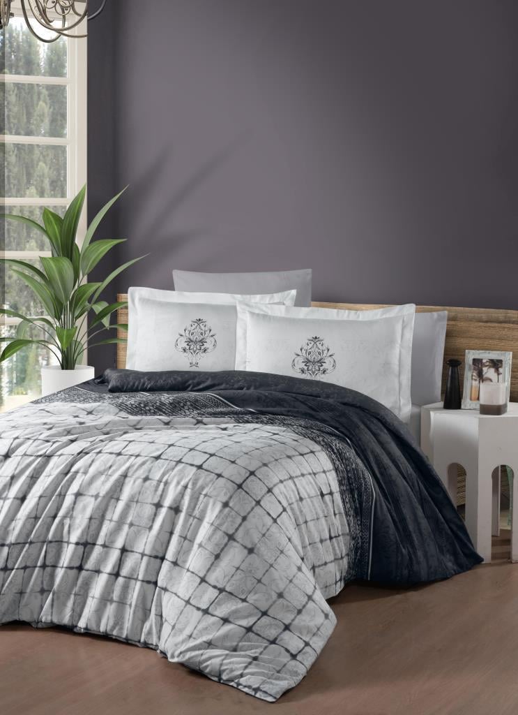 Ebatlar: Nevresim: 200x220 cm/ Çarşaf: 240x260 cm/ Volanlı Yastık Kılıfı: 50x70 cm (2 adet) / Standart Yastık Kılıfı: 50x70 cm (2 adet)