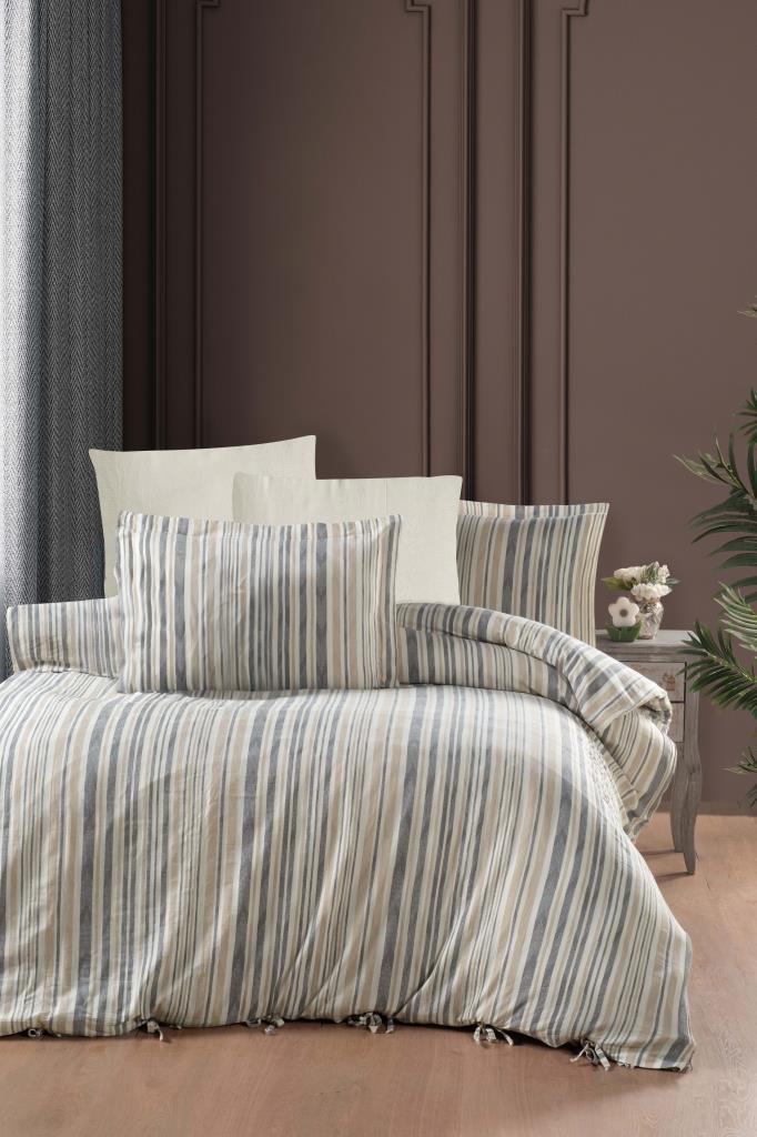 Ebatlar: Nevresim: 200x220 cm/ Çarşaf: 240x260 cm/ Volanlı Yastık Kılıfı: 50x70 cm (2 adet) / Standart Yastık Kılıfı: 50x70 cm (2 adet)